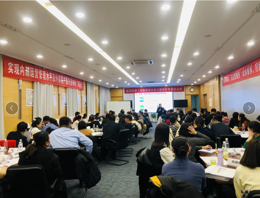 2023年2月林瑜老師為威海聯(lián)通投訴處理專員、服務(wù)主管、小CEO、客服主管等提供主題為《服務(wù)正能量與客戶投訴處理技巧》的內(nèi)訓(xùn)課程。