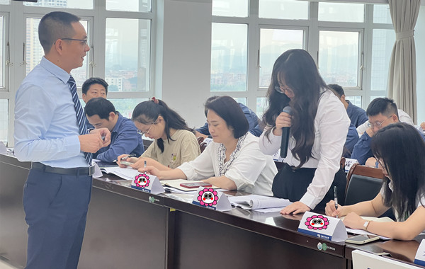 郭老師先講解“職業(yè)化”就是一種工作狀態(tài)的標(biāo)準(zhǔn)化、規(guī)范化、制度化,即在合適的時間、合適的地點(diǎn),用合適的方式,說合適的話,做合適的事。并引導(dǎo)大家小組討論:“我心中標(biāo)準(zhǔn)企業(yè)的職業(yè)素養(yǎng)”,學(xué)員們踴躍發(fā)言,不斷豐富職業(yè)化的內(nèi)涵。